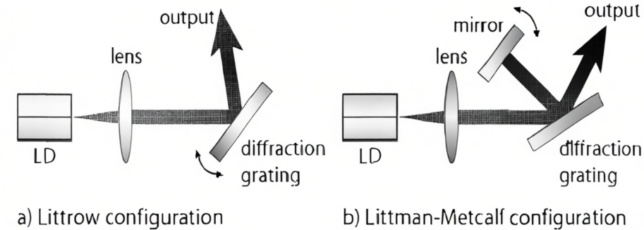 Lühikese õõnsusega põhiõõnsusega laseritel, nagu DFB ja DBR, on piiratud õõnsusesisese footoni interaktsiooniaeg, mis muudab sügava joonelaiuse tihendamise keeruliseks. Joonelaiuse edasiseks tihendamiseks ja müra summutamiseks kombineeritakse sellised lühikese õõnsusega põhiõõnsuse konfiguratsioonid jõudluse optimeerimiseks sageli välise õõnsuse struktuuridega. Levinud välisõõnsuste struktuurid hõlmavad ruumilisi välisõõnsusi, fiiberväliseid õõnsusi ja lainejuhi välisõõnsusi. Enne fiiberoptiliste seadmete ja lainejuhtstruktuuride väljatöötamist koosnesid välised õõnsused valdavalt ruumilisest optikast, mis olid kombineeritud diskreetsete optiliste komponentidega. Nende hulgas kasutavad võrepõhised ruumilised välisõõnsuse tagasisidestruktuurid peamiselt Littrow ja Littmani kujundust, mis tavaliselt koosnevad laservõimenduse õõnsusest, ühendusläätsedest ja difraktsioonivõrest. Võre tagasisideelemendina võimaldab lainepikkuse häälestamist, režiimi valimist ja joonelaiuse tihendamist.